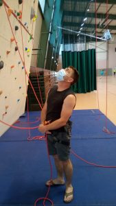 Pour rappel, le port du masque est obligatoire lors des déplacements à l’intérieur du gymnase, mais pas pendant l’activité de grimpe.