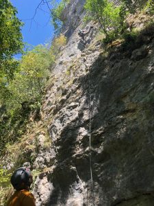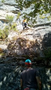 Après 7 longueurs, l’équipe rentre au camp de base et, après une bonne douche, fait connaissance avec les plats locaux de la pizzeria Chez Flo’, agrémentés d’un concert en plein air non dénué d’intérêt, sous un ciel étoilé bien dégagé…