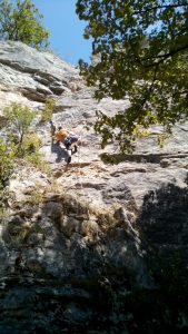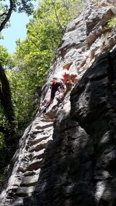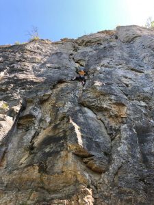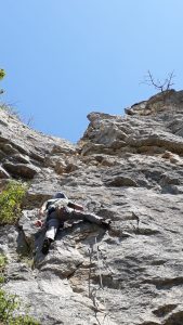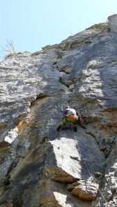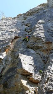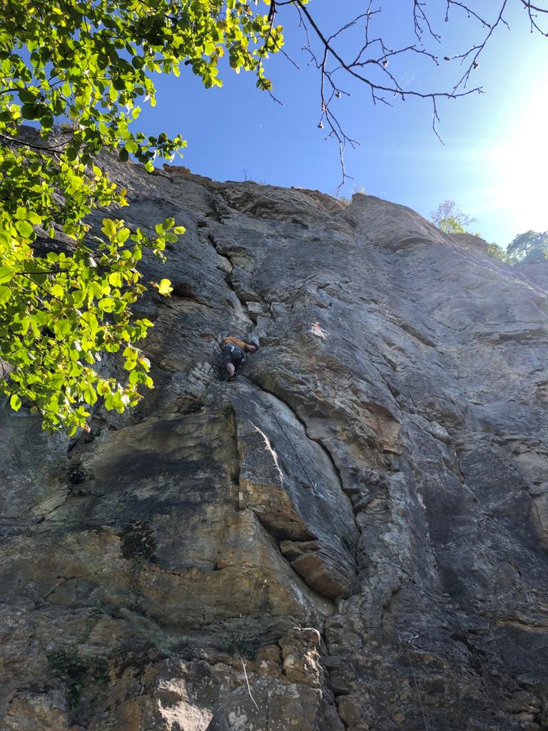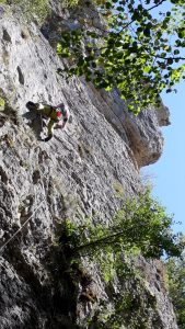Mais le plaisir est au rendez-vous, les lignes sont belles et le rocher agréable… Beaucoup de dièdres et de fissures permettent de varier les techniques de grimpe. La longueur des voies jusqu’à 30 mètres permet de travailler la « conti » et sentir si l’entraînement au viaduc a payé…