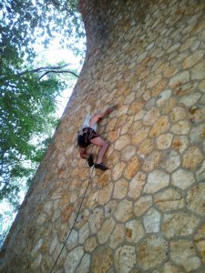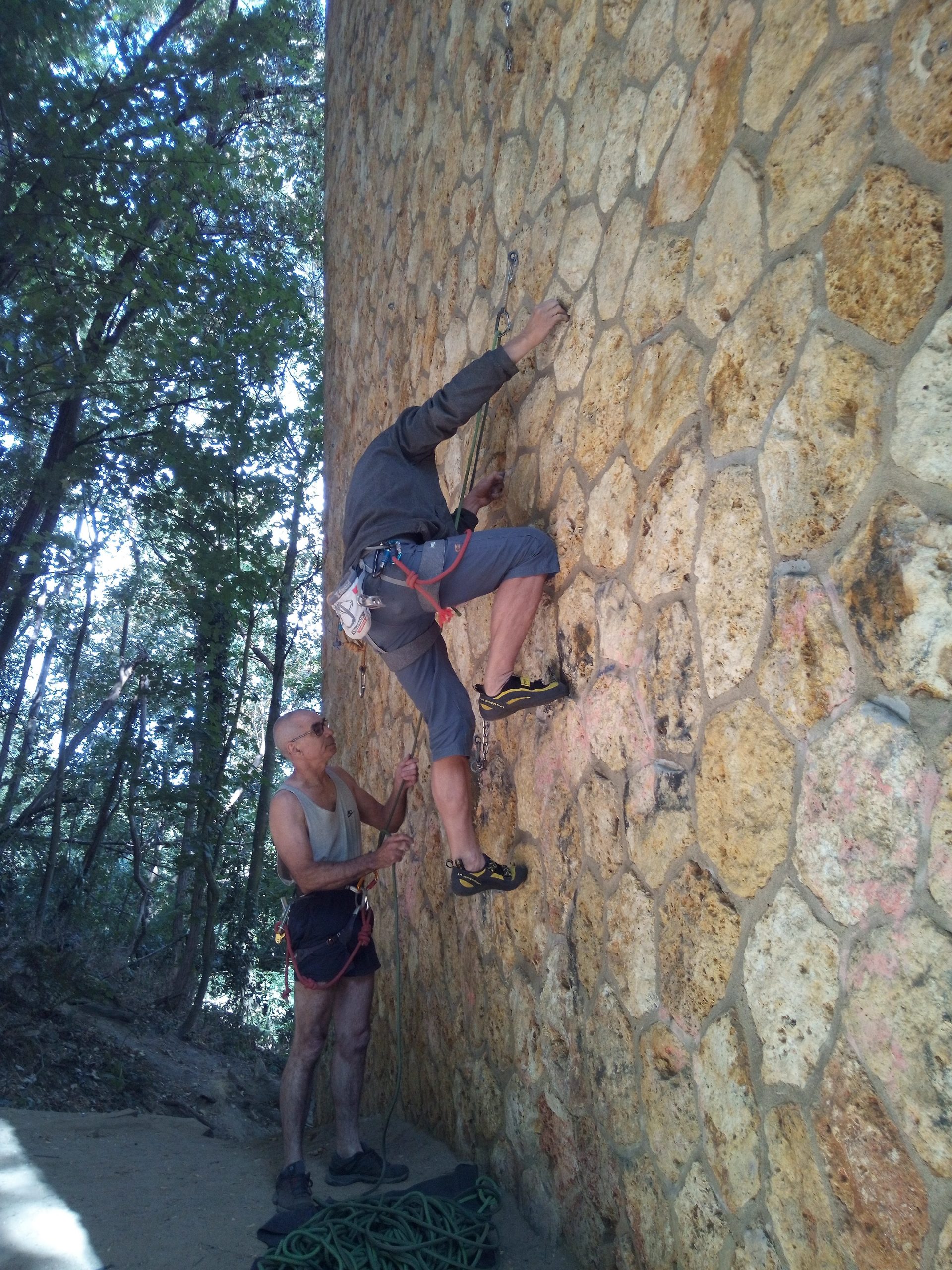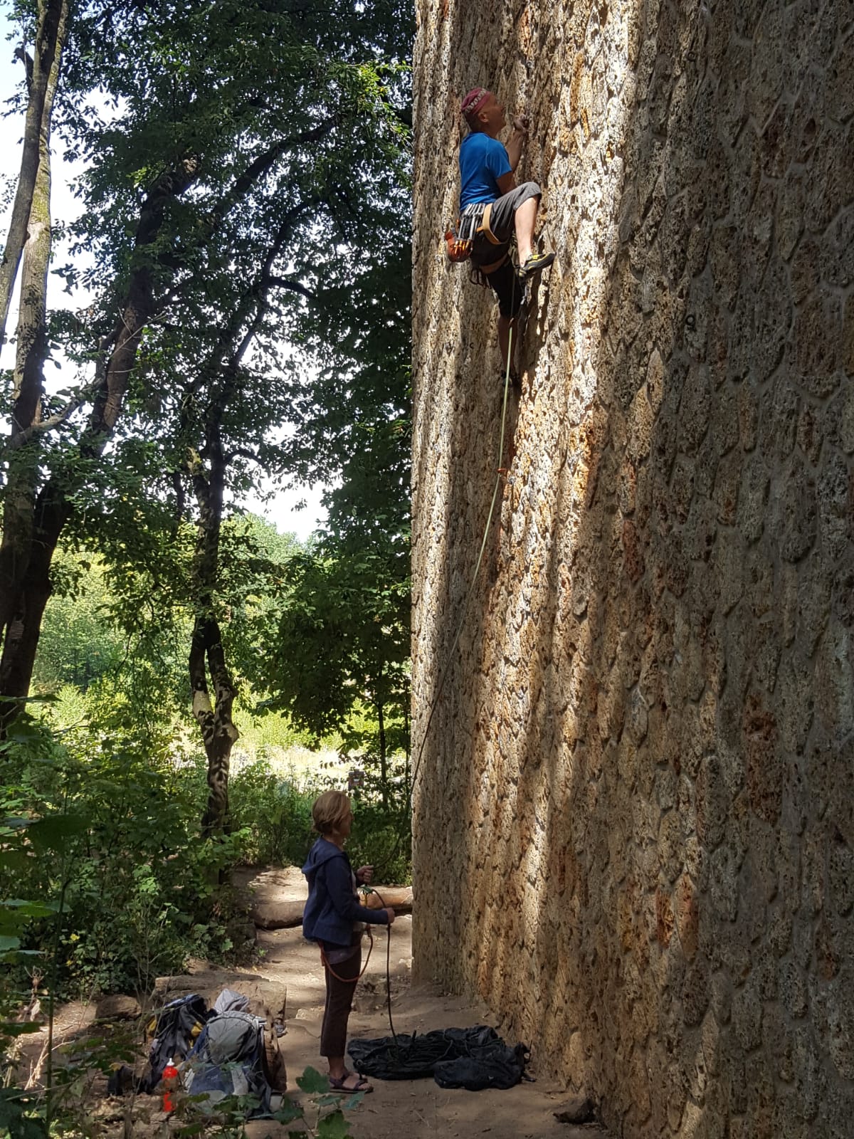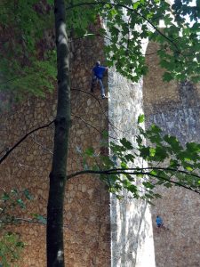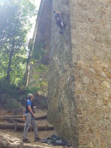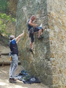 Passés les premiers moments d’hésitation devant les voies bien verticales et les relais hauts placés qui font tordre les nuques, il est temps de s’élancer et de tâter les prises creusées dans la pierre… avec des résultats inégaux.