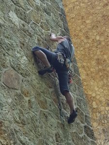 Heureusement des voies « généreusement » équipées dans une cotation adaptée permettent d’enchaîner les voies, de travailler la « conti » et de réviser les manip‘ du haut de voie pour redescendre en moulinette (là on a le droit, même devant JMD).